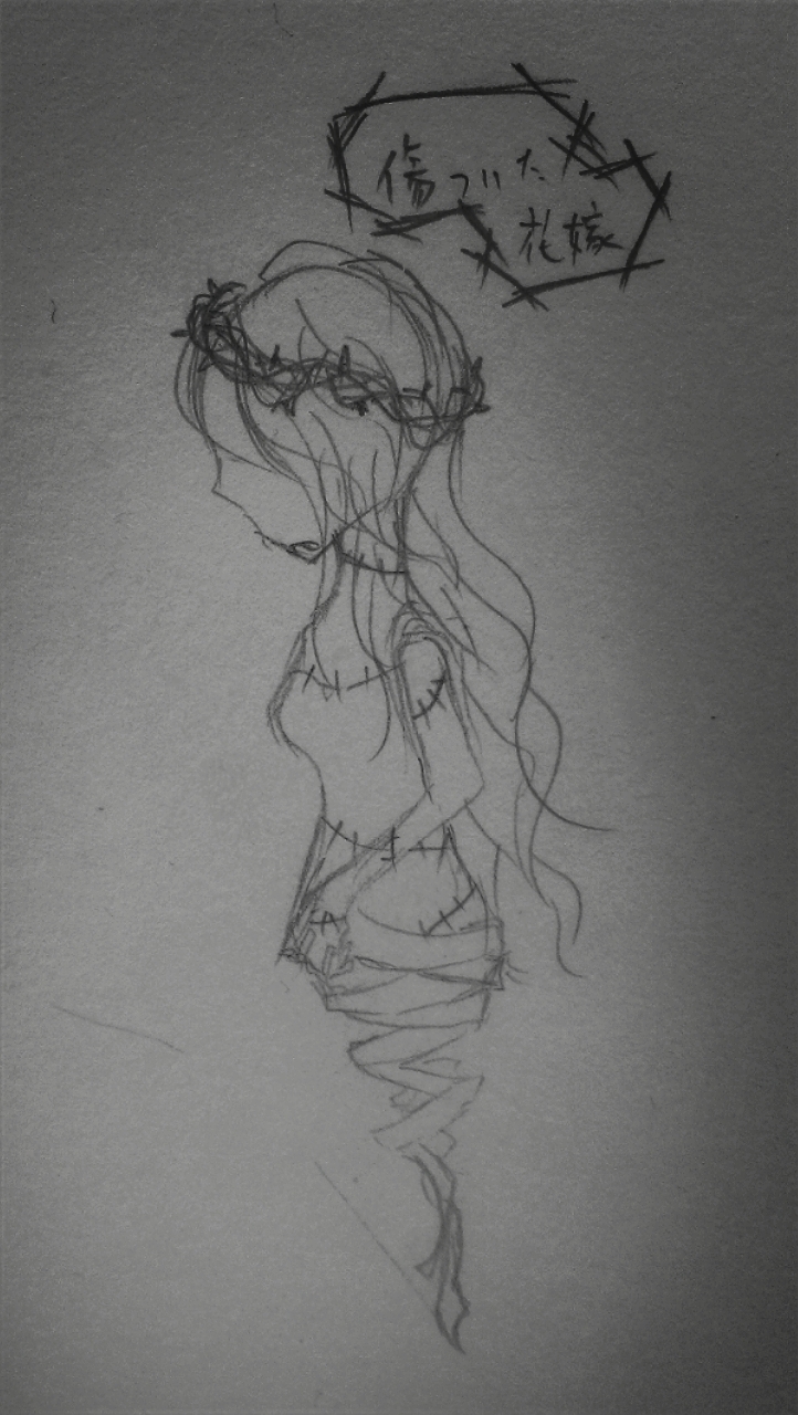 傷だらけで、イバラの冠を付けた花嫁